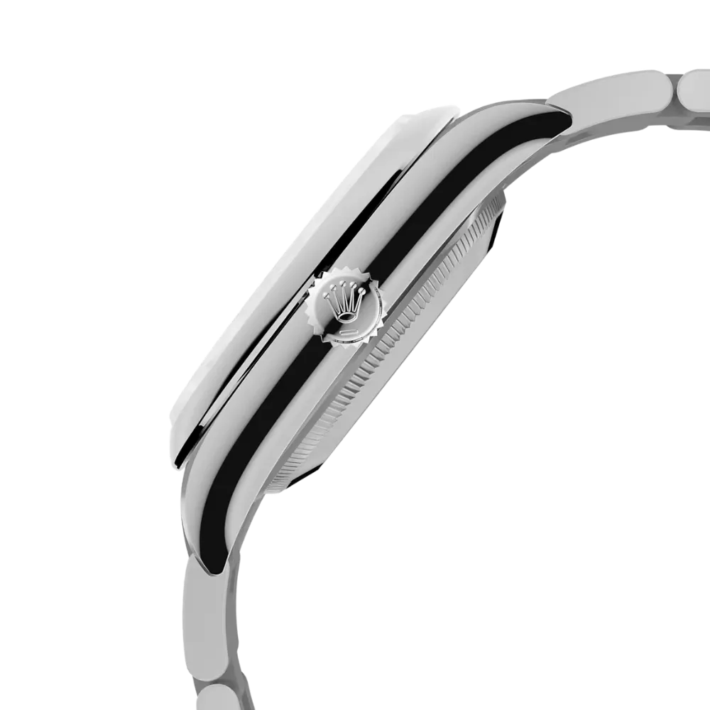 - Bezel: Smooth, domed bezel in polished Oystersteel.